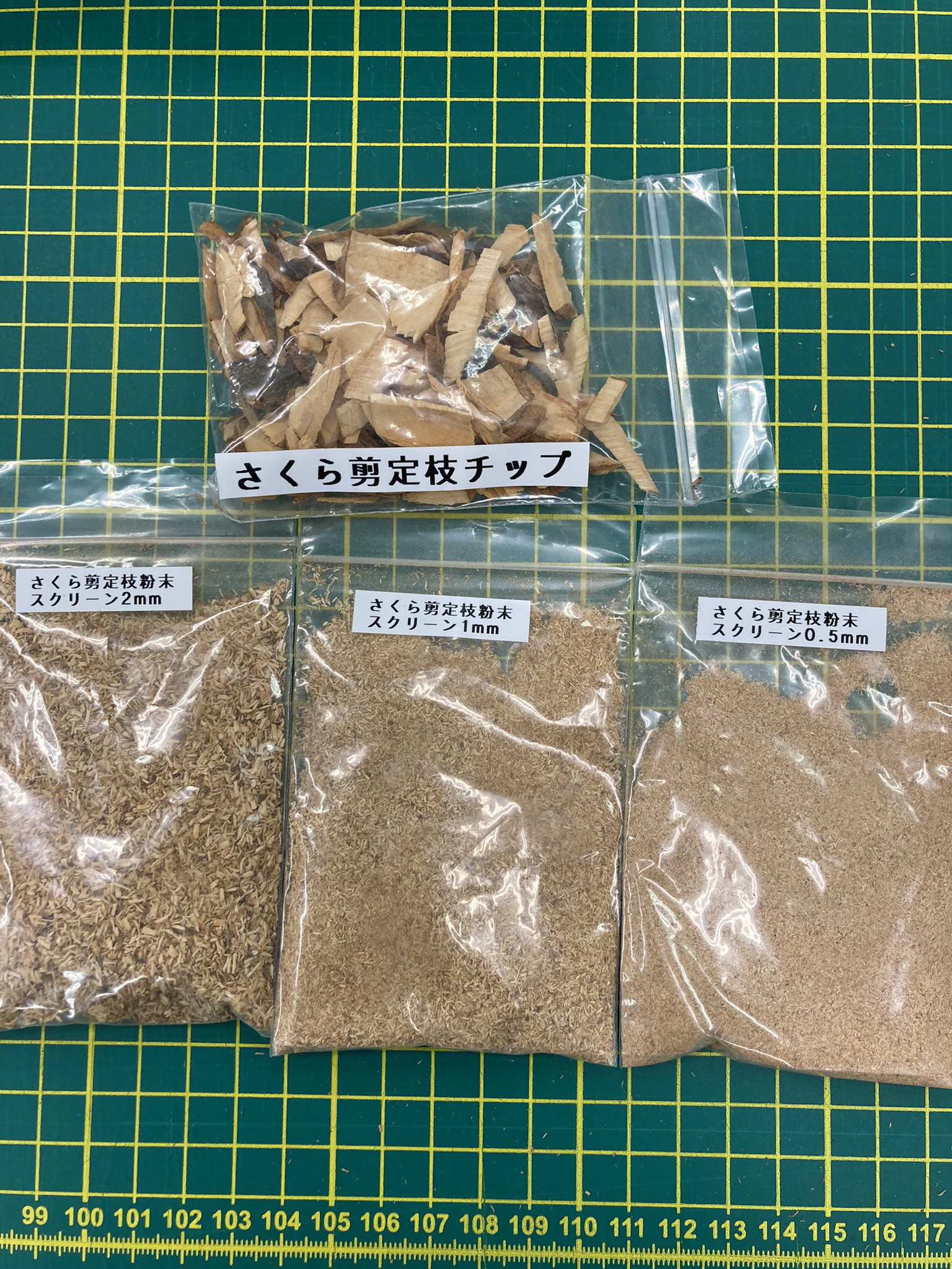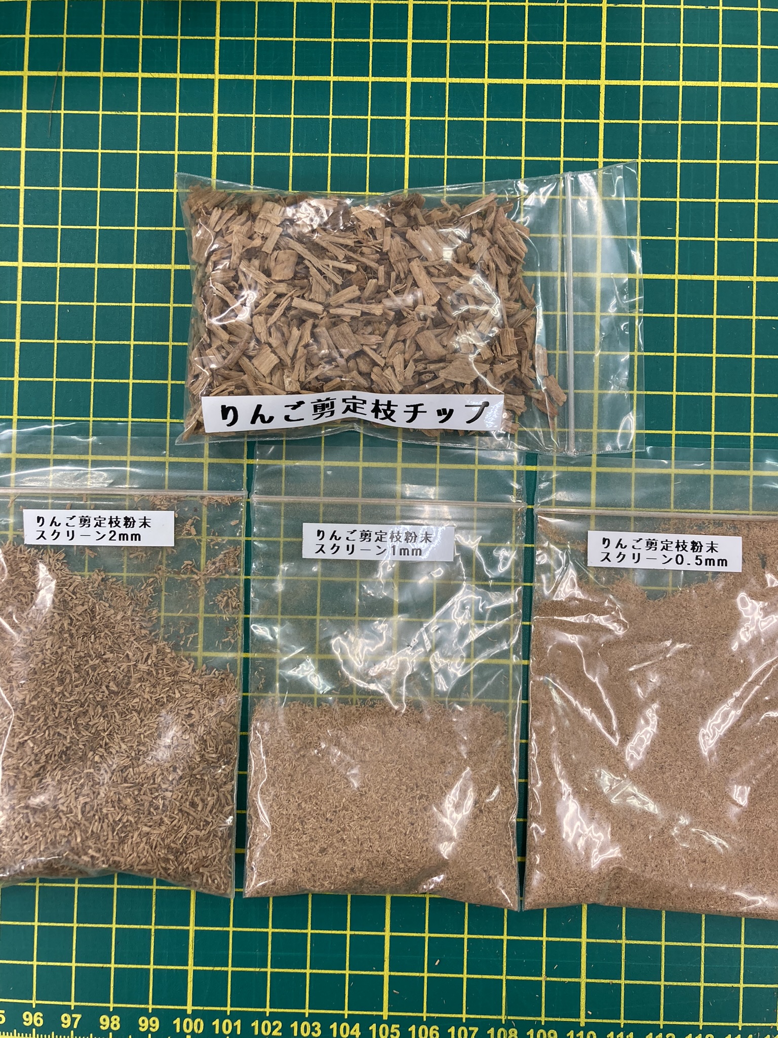 りんご剪定枝・さくら剪定枝を利用したボード試作