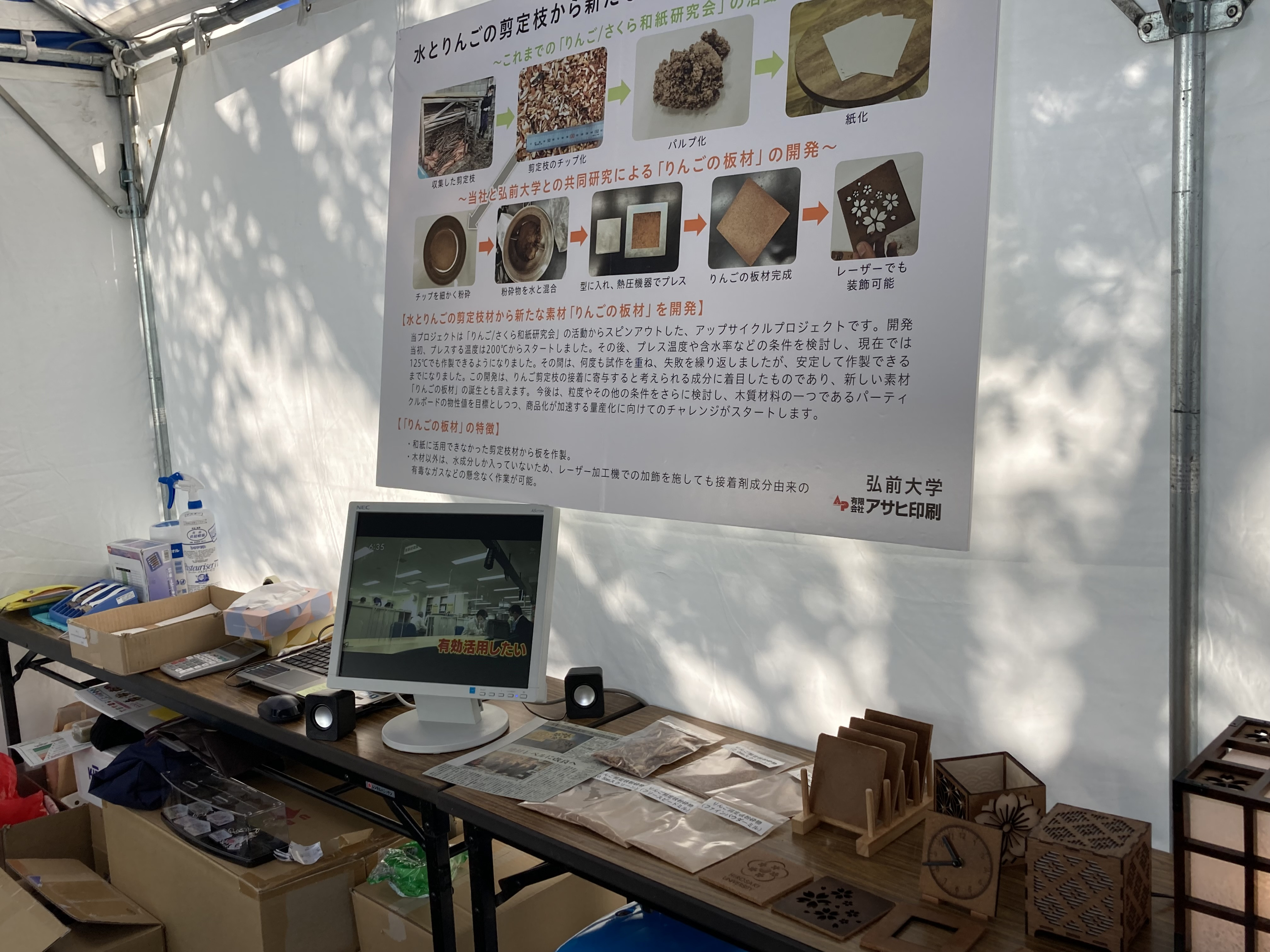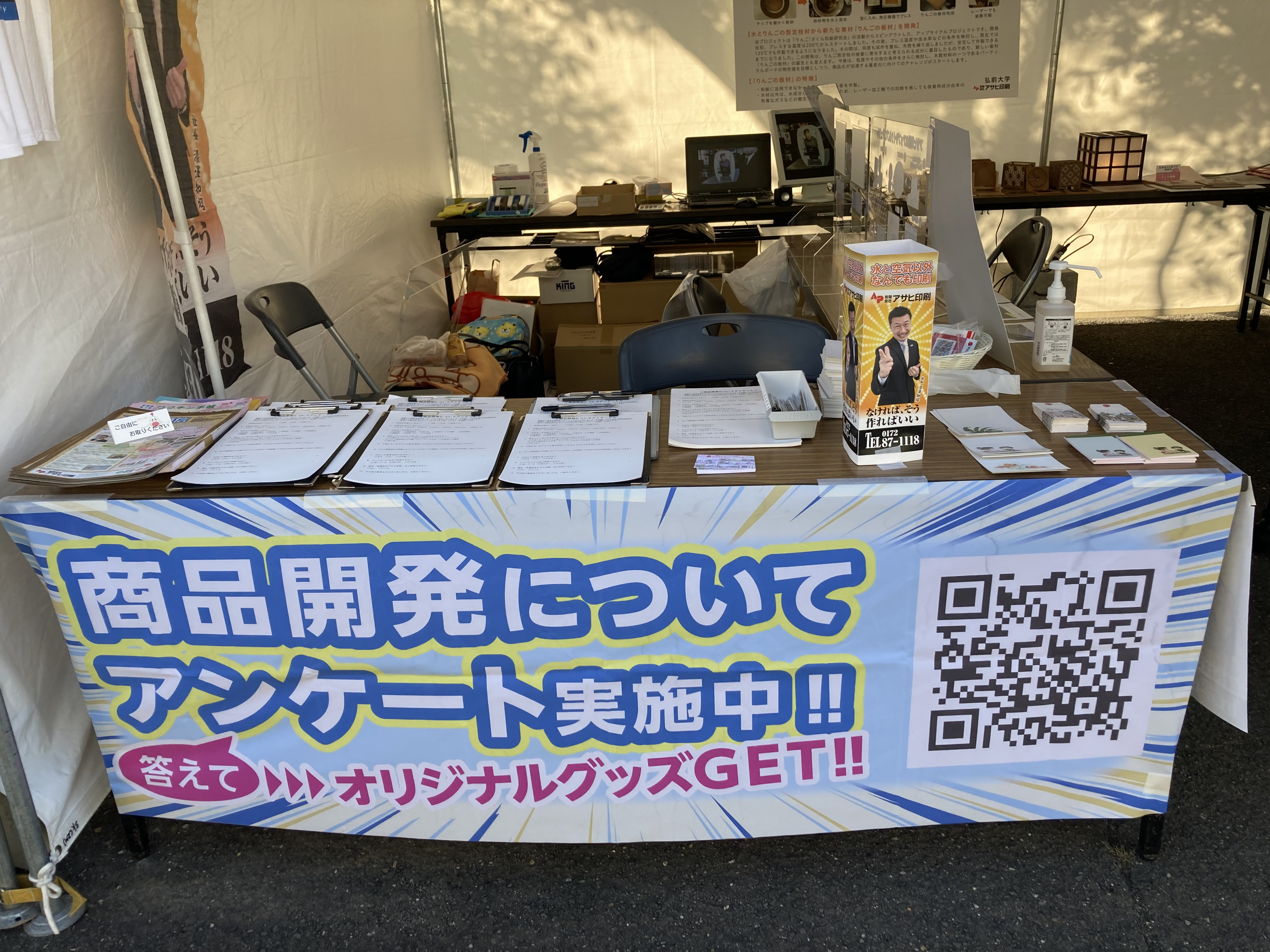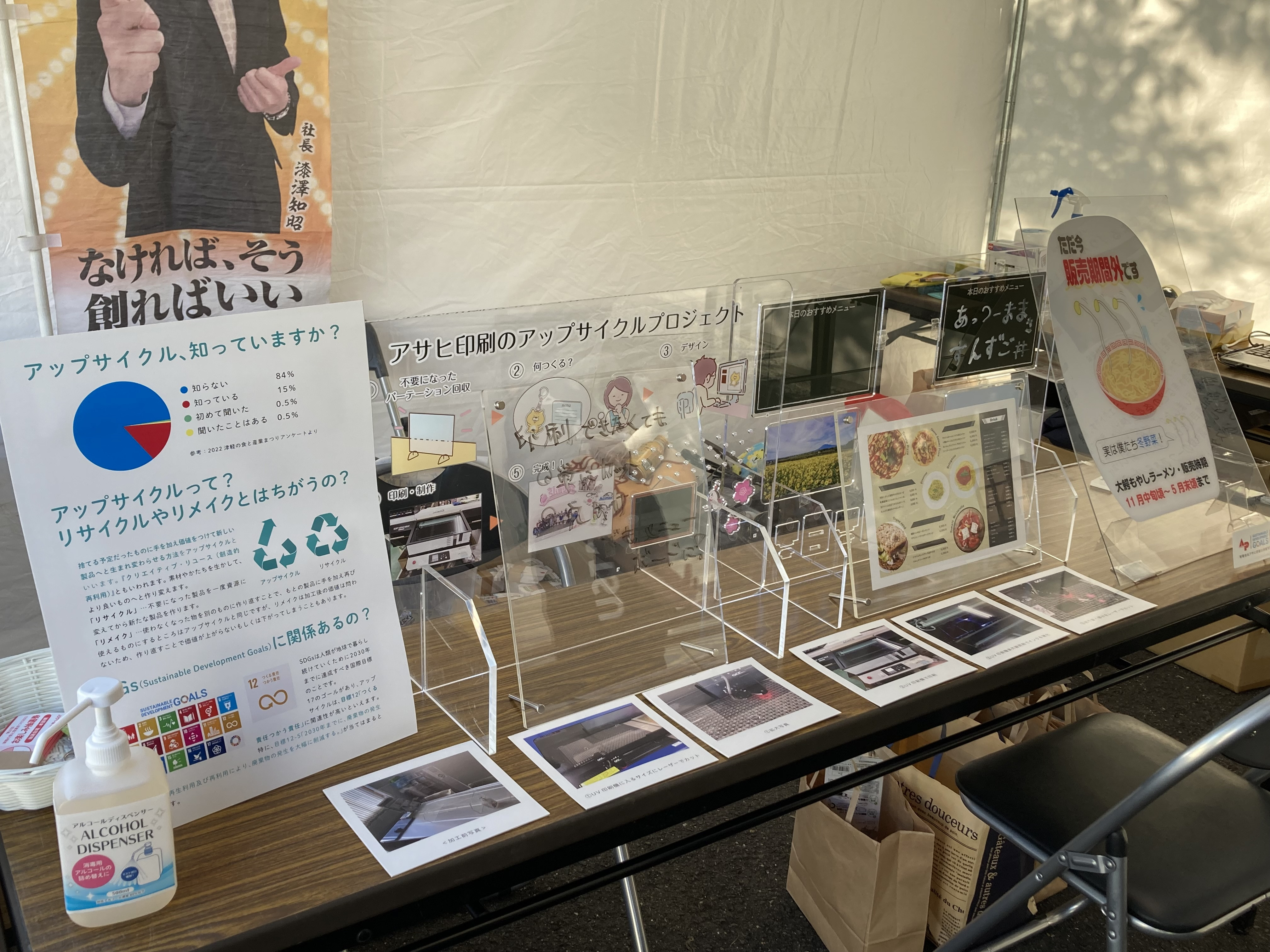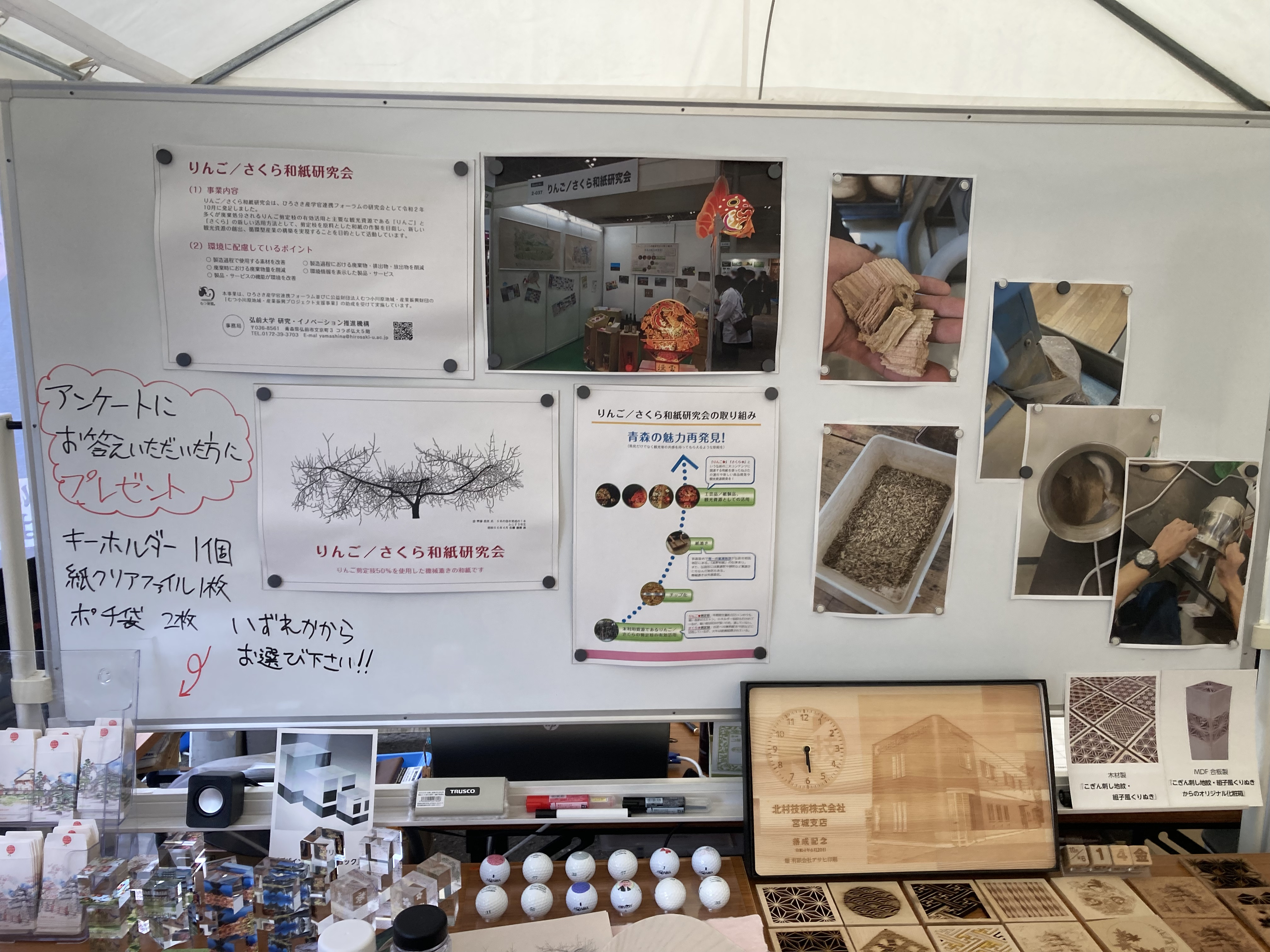 10/13(金)~ 15(日)弘前市運動公園で行われた「津軽の食と産業まつり」に出展しました。出展目的は、ご来場の方にアップサイクル事業についてご覧いただきアンケートをご協力いただくものでした。