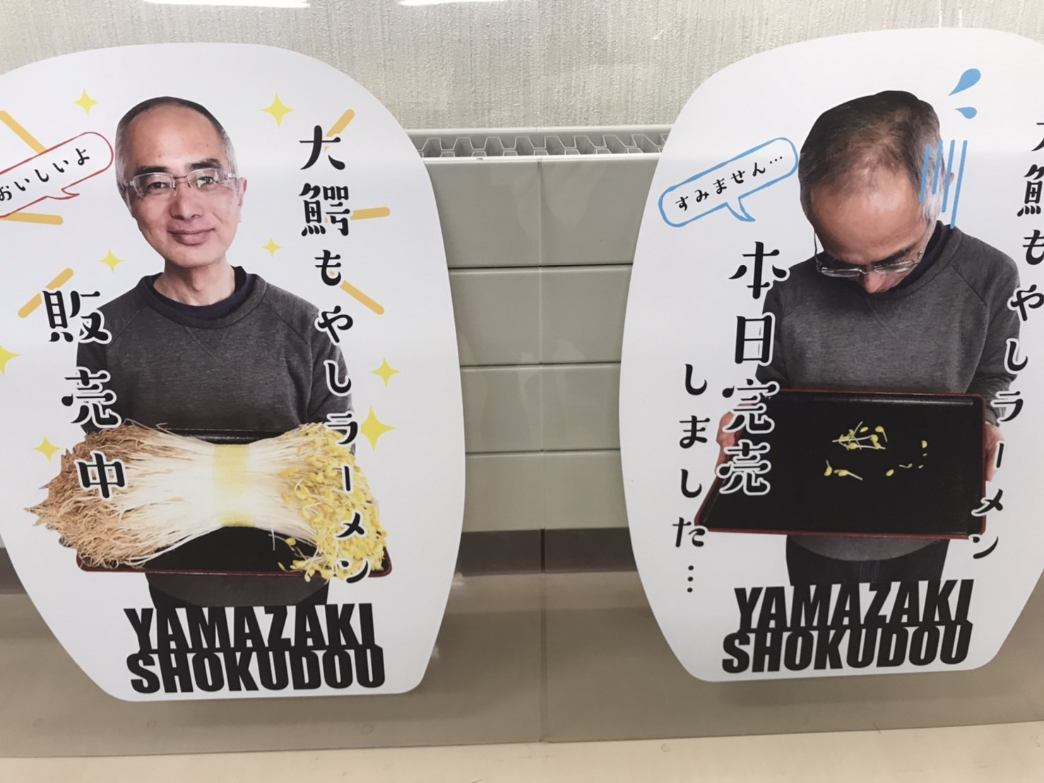 人気商品の「大鰐もやしラーメン」は売り切れになることもあり、以前は毎回、商品の売り切れ状況を紙に書いて案内しており、そのための紙も大量に用意していました。案内版を紙からパネルに変えることで、アクリル板の再利用とともに、紙の使用も減らせることができました。
